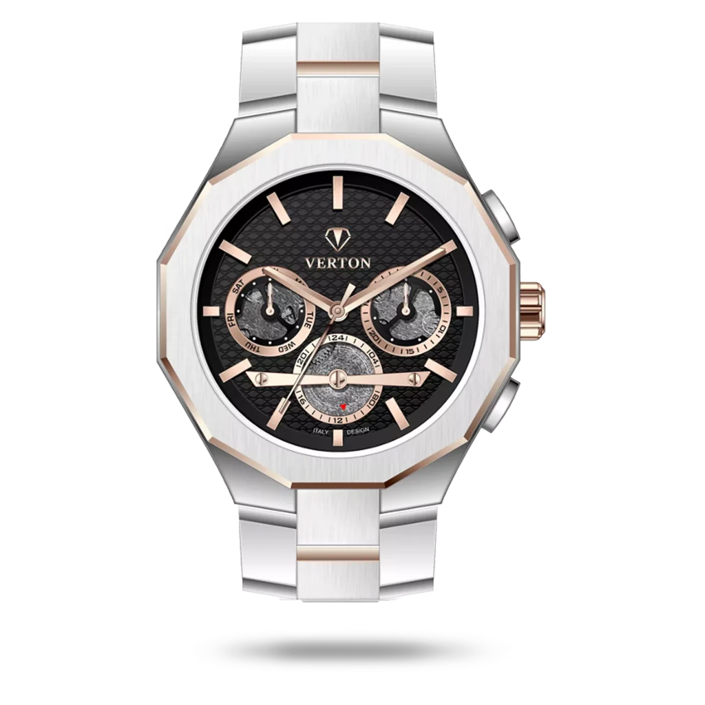 زمان ارزشمندترین دارایی شماست؛ آن را با زیبایی قاب بگیرید. سفیر تایم با افتخار به عنوان نمایشگاه تخصصی ساعتهای ورتون (Verton)، مجموعهای بینظیر از طراحیهای کلاسیک و مدرن را گرد هم آورده است. ما در اینجا برآنیم تا پیش از خرید، تجربهای کامل از بررسی جزئیات، کیفیت ساخت و اصالت کالا را برای شما فراهم کنیم. ساعتهای ورتون، نمادی از دوام، دقت و استایلی ماندگار هستند که برای هر سلیقهای، حرفی برای گفتن دارند.