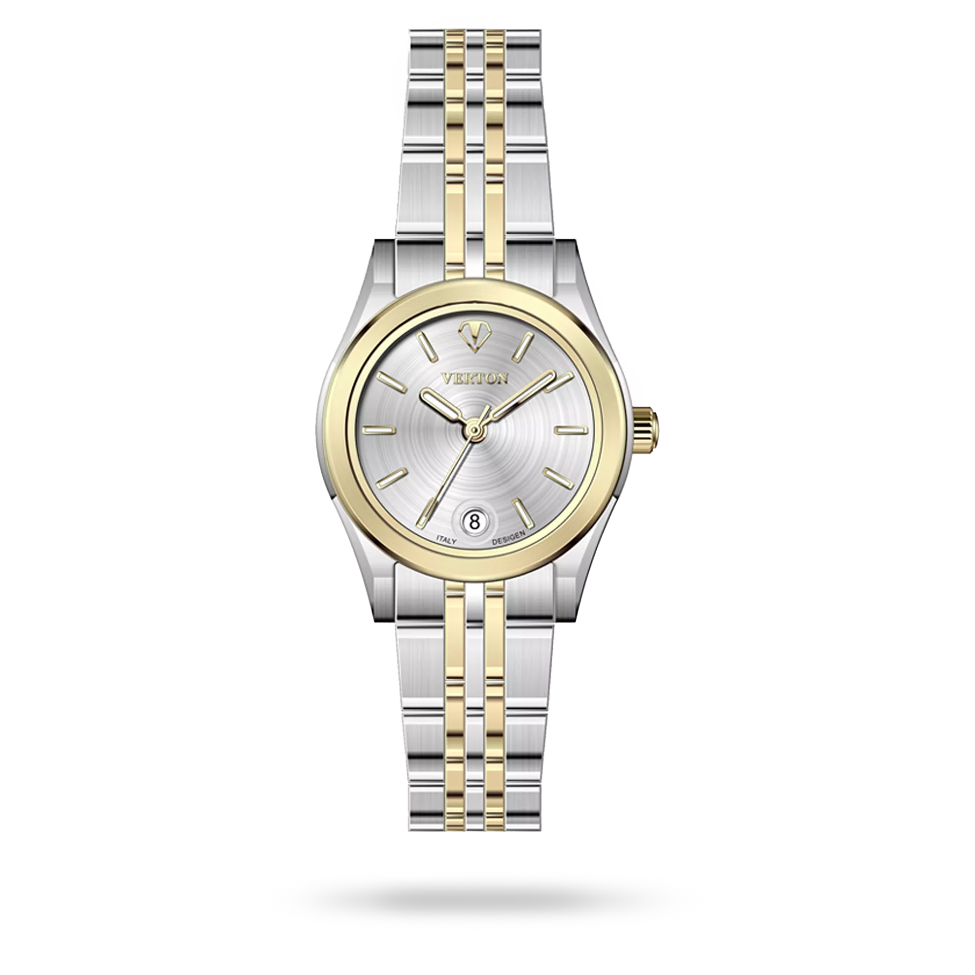 ساعت مچی ورتون، تلفیقی از طراحی اصیل ایتالیایی و ظرافت کلاسیک، انتخابی ایده‌آل برای افرادی است که به جزئیات اهمیت می‌دهند. این ساعت با شناسه محصول VR1107-1160L در دسته تقویم دار قرار می‌گیرد و با قاب استیل طلایی در کنار بند استیل طلایی جلوه‌ای لوکس و چشم‌نواز به استایل شما می‌بخشد. صفحه ساعت به رنگ سیلور طراحی شده که خوانایی بالا و زیبایی ماندگار را تضمین می‌کند. این مدل به‌صورت ست عرضه شده و با طراحی ویژه خود، گزینه‌ای کاملاً مناسب برای استفاده زنانه به شمار می‌رود. ساعت‌های ورتون نمادی از کیفیت، دقت و سبک زندگی لوکس ایتالیایی هستند.