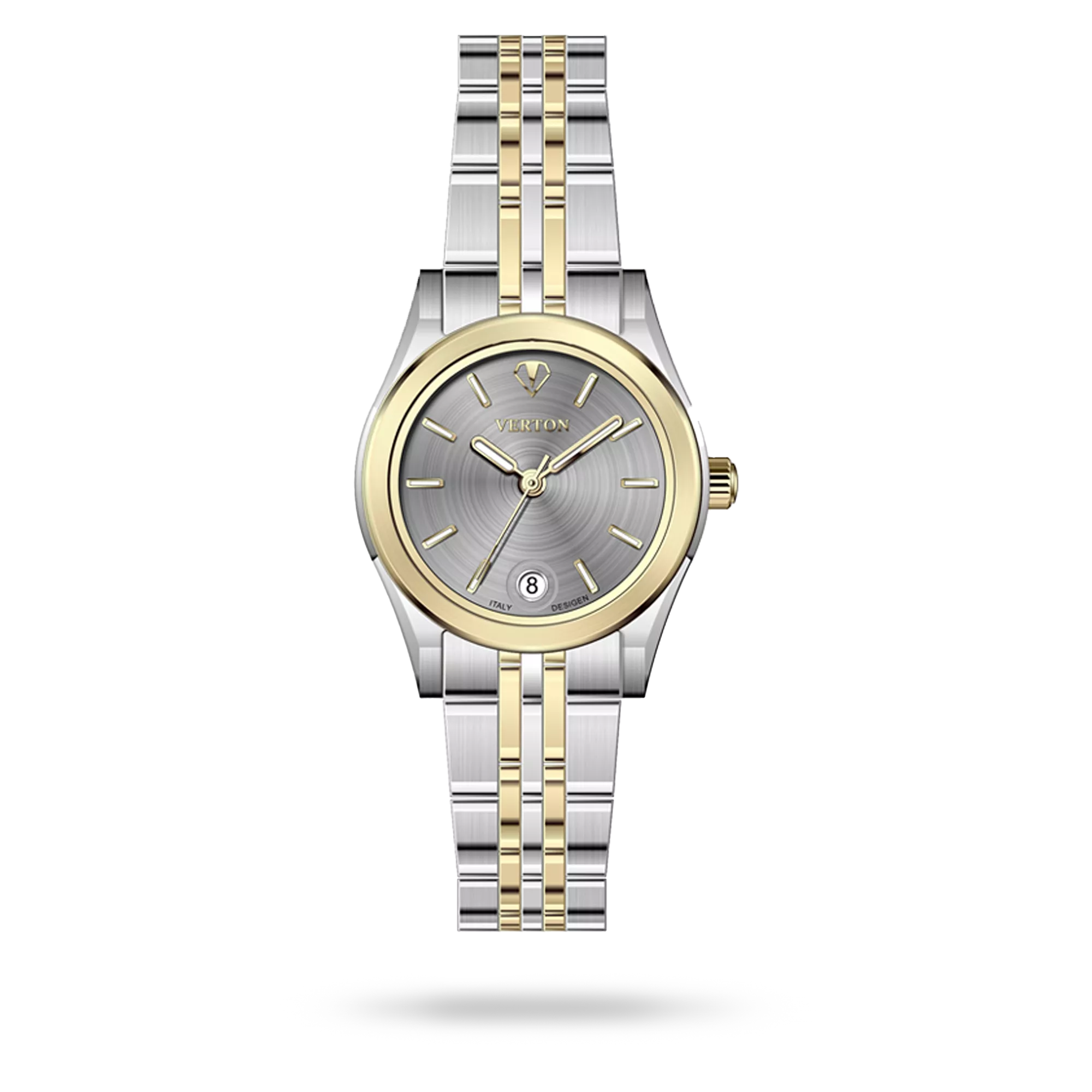 ساعت مچی ورتون، تلفیقی از طراحی اصیل ایتالیایی و ظرافت کلاسیک، انتخابی ایدهآل برای افرادی است که به جزئیات اهمیت میدهند. این ساعت با شناسه محصول VR1107-1170L در دسته تقویم دار قرار میگیرد و با قاب استیل طلایی در کنار بند استیل طلایی جلوهای لوکس و چشمنواز به استایل شما میبخشد. صفحه ساعت به رنگ طوسی طراحی شده که خوانایی بالا و زیبایی ماندگار را تضمین میکند. این مدل بهصورت ست عرضه شده و با طراحی ویژه خود، گزینهای کاملاً مناسب برای استفاده زنانه به شمار میرود. ساعتهای ورتون نمادی از کیفیت، دقت و سبک زندگی لوکس ایتالیایی هستند.