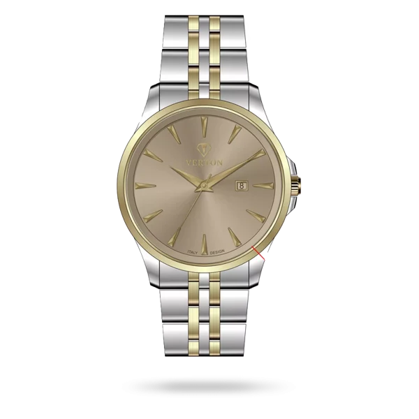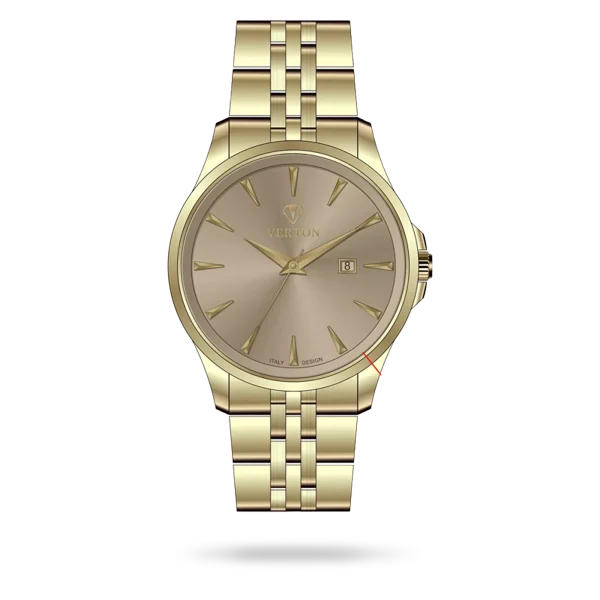 ساعت مچی ورتون، تلفیقی از طراحی اصیل ایتالیایی و ظرافت کلاسیک، انتخابی ایده‌آل برای افرادی است که به جزئیات اهمیت می‌دهند. این ساعت با شناسه محصول VR1106-1180G در دسته تقویم دار قرار می‌گیرد و با قاب استیل طلایی در کنار بند استیل طلایی جلوه‌ای لوکس و چشم‌نواز به استایل شما می‌بخشد. صفحه ساعت به رنگ کافی طراحی شده که خوانایی بالا و زیبایی ماندگار را تضمین می‌کند. این مدل به‌صورت ست عرضه شده و با طراحی ویژه خود، گزینه‌ای کاملاً مناسب برای استفاده مردانه به شمار می‌رود. ساعت‌های ورتون نمادی از کیفیت، دقت و سبک زندگی لوکس ایتالیایی هستند.